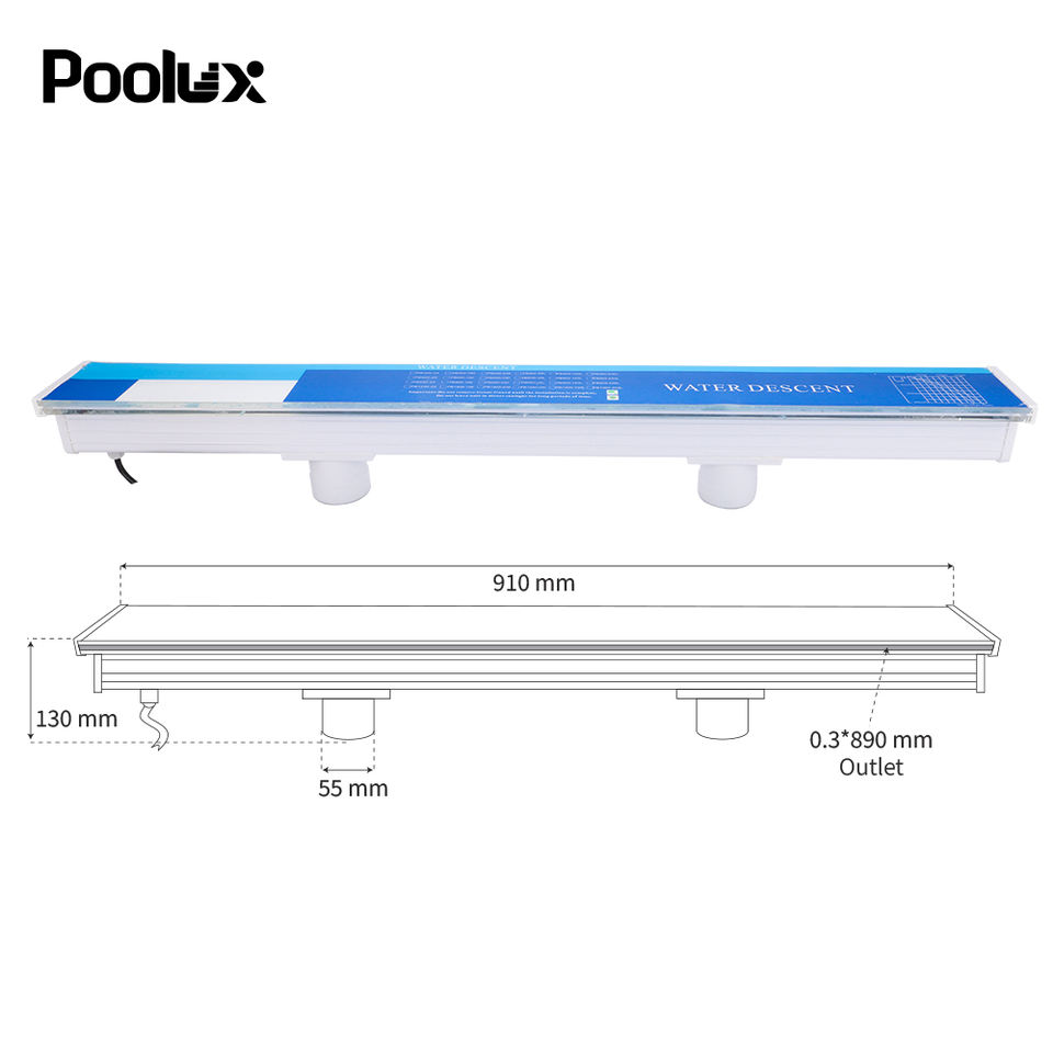 Vente flash : Cascade de piscine de 900 mm, cascade de piscine avec éclairage LED, cascade de piscine avec lumières LED colorées