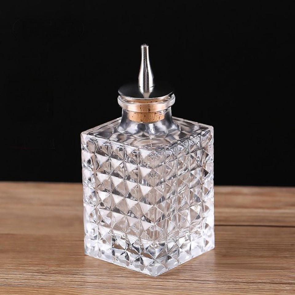 Offre Spéciale 90ml Premium Bar Tool Carré Bitters Bouteille Verre avec Métal Top Cocktail Barman Spécial