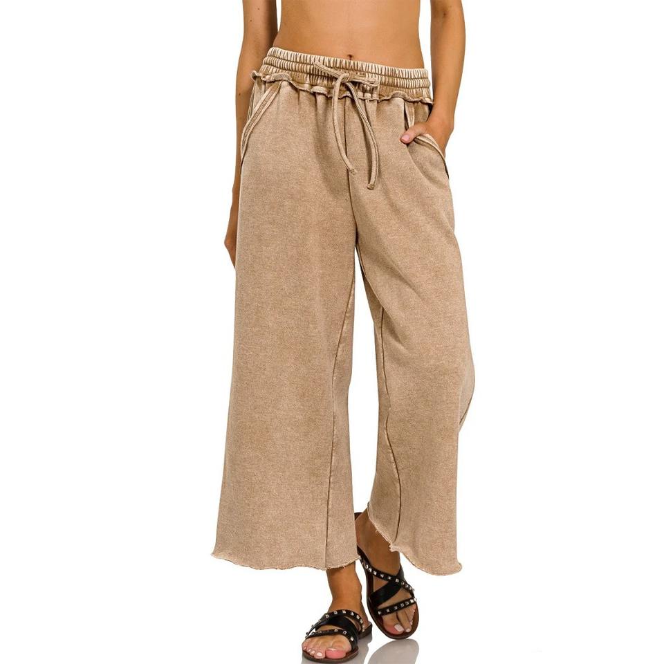 Pantalon de survêtement palazzo vintage pour homme, style streetwear, taille double, en molleton 100 % coton délavé à l'acide, respirant, anti-plis, élastique – Grande Vente