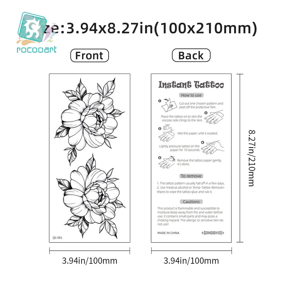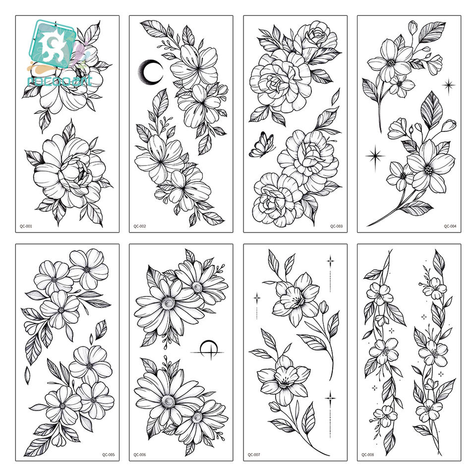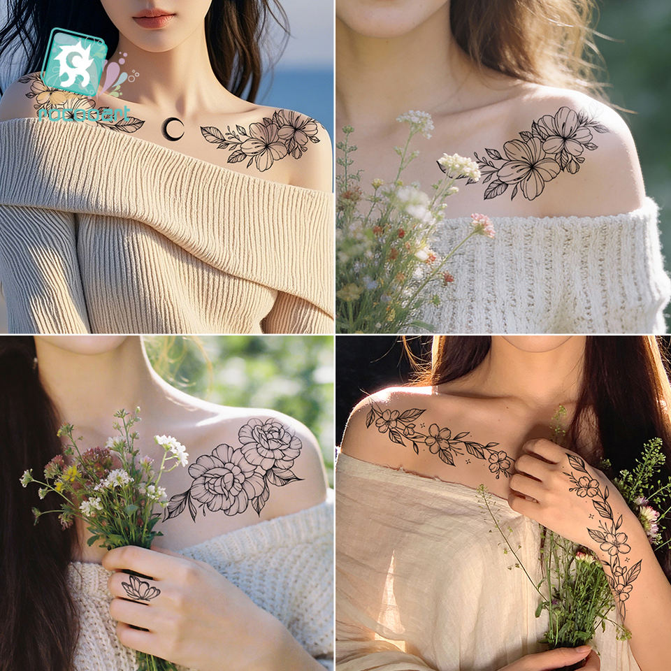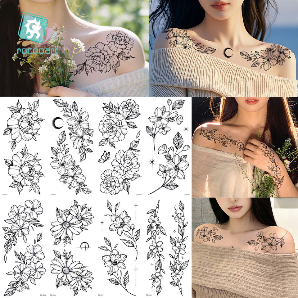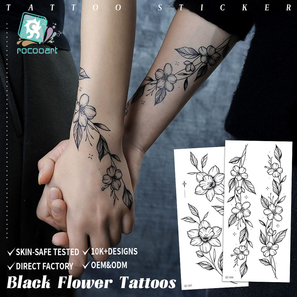 Tatouages temporaires pour adultes en vente chaude, motifs de fleurs noires, tatouage pour bras féminin, autocollant d'art corporel imperméable, femmes et hommes