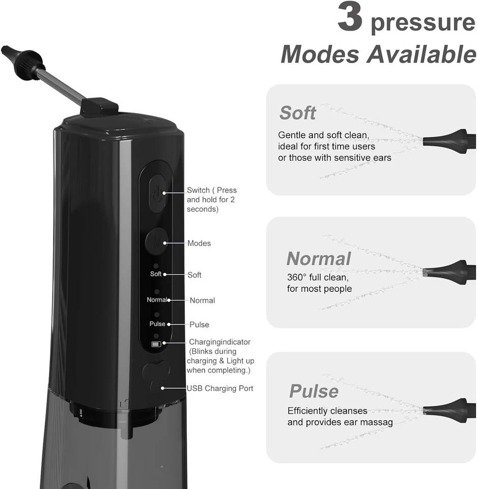 Kit de nettoyage de cérumen pour adultes Offre Spéciale alimenté à l'eau à usage domestique équipement de rinçage des oreilles matière plastique type de prise américaine