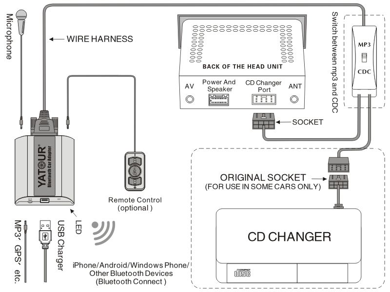 Lecteurs MP3 / MP4, Radio Tuner, L'AUTRE, Port USB, Chargeur de téléphone, Port AUXILIAIRE, Audio Tuner, MP3,GPS,USB, microphone, télécommande