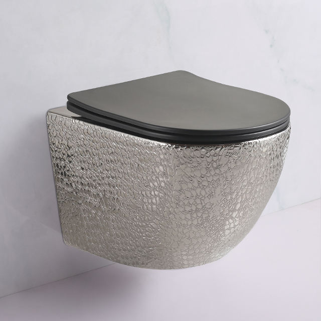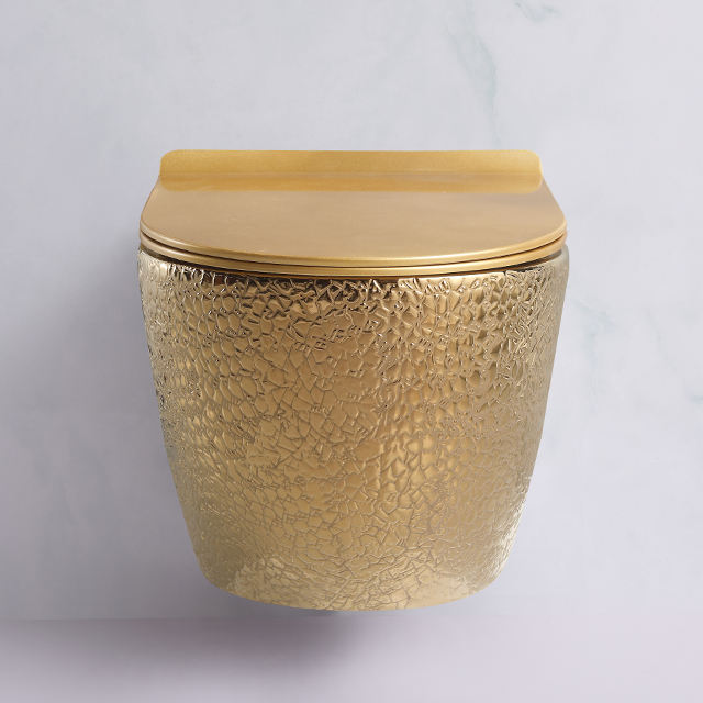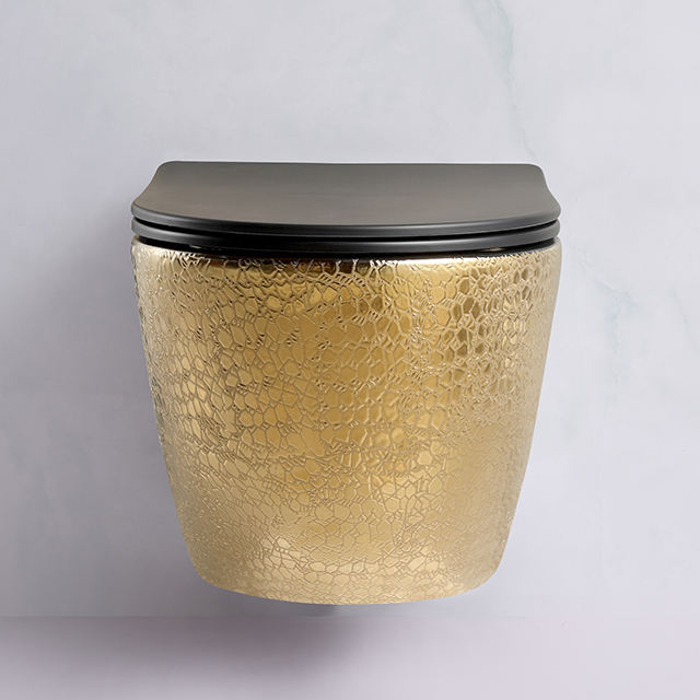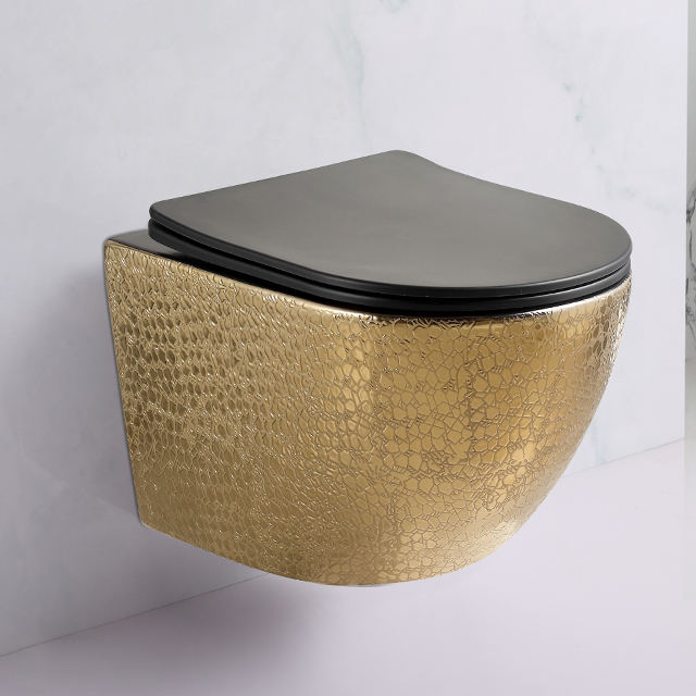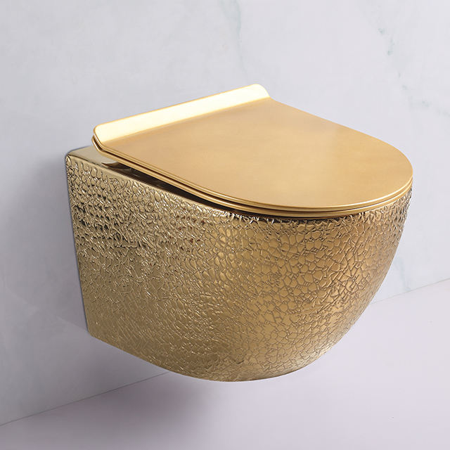 Vente flash : WC suspendu en porcelaine dorée, sanitaire, siphon en P, double chasse d'eau, réservoir dissimulé