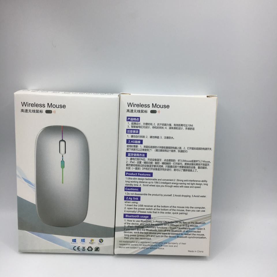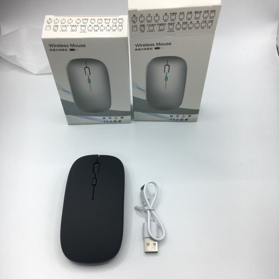 Souris sans fil Bluetooth double mode en promotion, rechargeable, silencieuse, ultra-fine, pour bureau, jeux, lumineuse