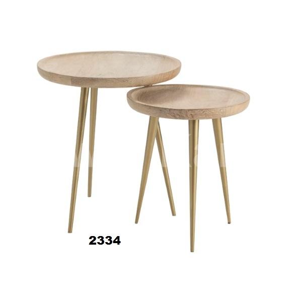 Ensemble de 2 tables d'extrémité rondes en métal et manguier massif brun Offre Spéciale
