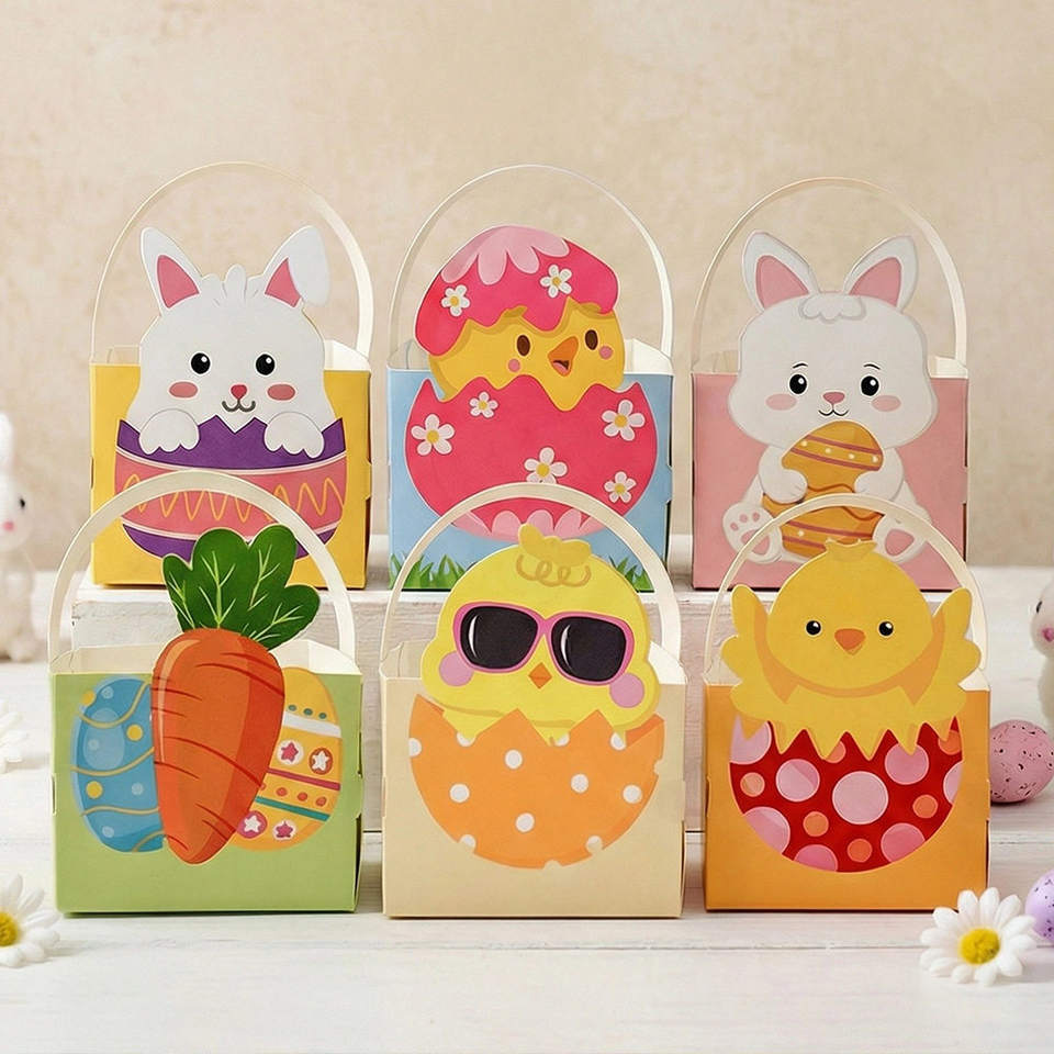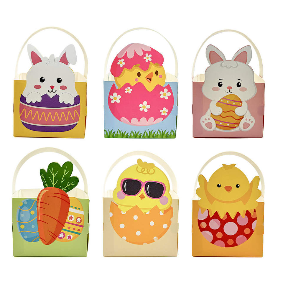 Promotion : Boîte en papier pour bonbons, Sac en feutre vide pour Pâques, Boîte d'emballage pour la chasse aux œufs, Panier portable, Décoration de fête, Boîte cadeau en papier pour emballage