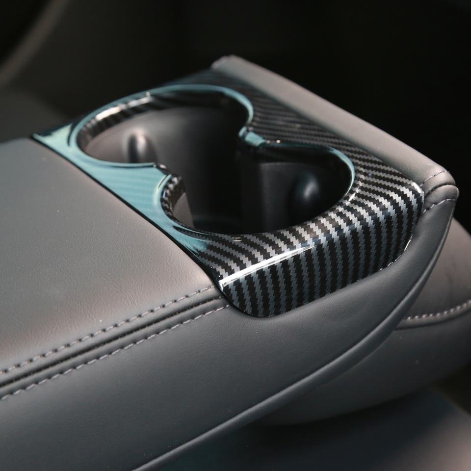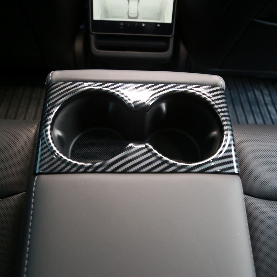 Cache-gobelet arrière en fibre de carbone pour Tesla Model Y (version relookée) - Support de tasse pour siège arrière Juniper Performance - Vente flash