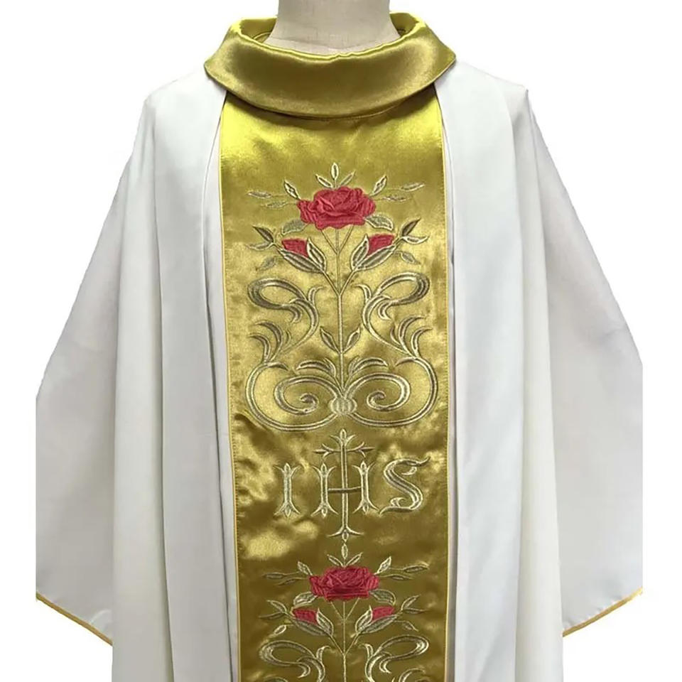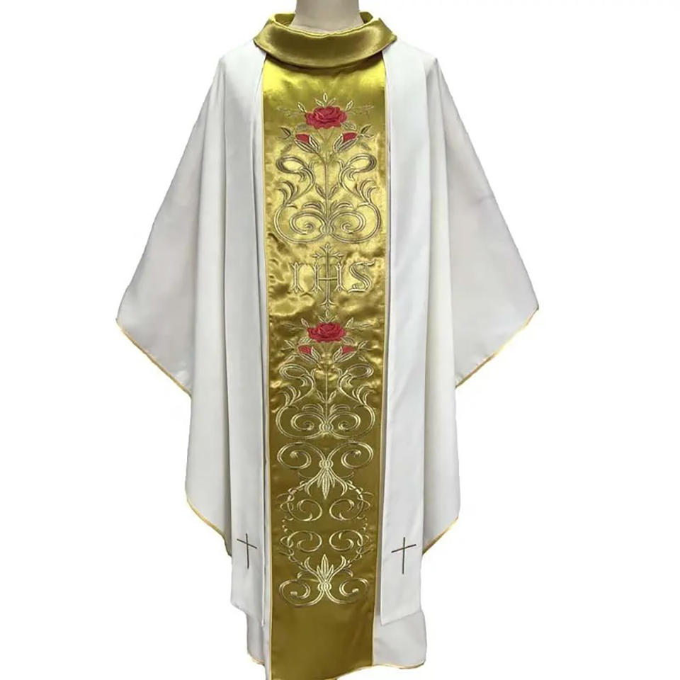 Chasuble Offre Spéciale avec broderie or et rouge Chasuble père prêtre avec étole sur mesure 2025 Chasuble de broderie