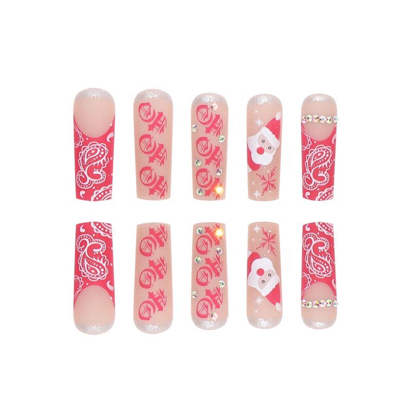 Offre Spéciale noël 24 pièces ongles artificiels ensemble bâton adhésif sur ongles conseils kit faux ongles courts