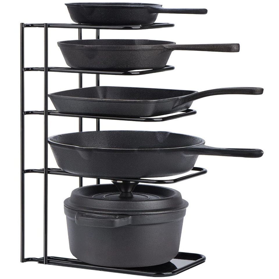 Support de rangement pour casseroles et poêles en fil métallique au design classique, idéal pour les accessoires de cuisine, en promotion à prix avantageux