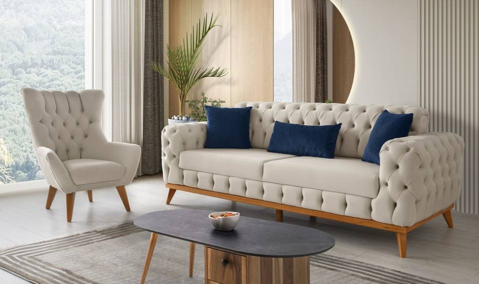 Ensemble canapé Lara (avec fauteuil en bois)