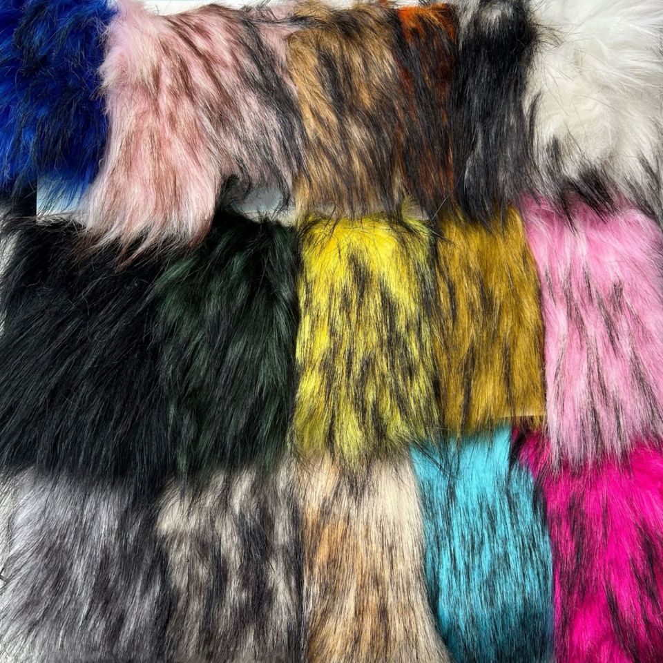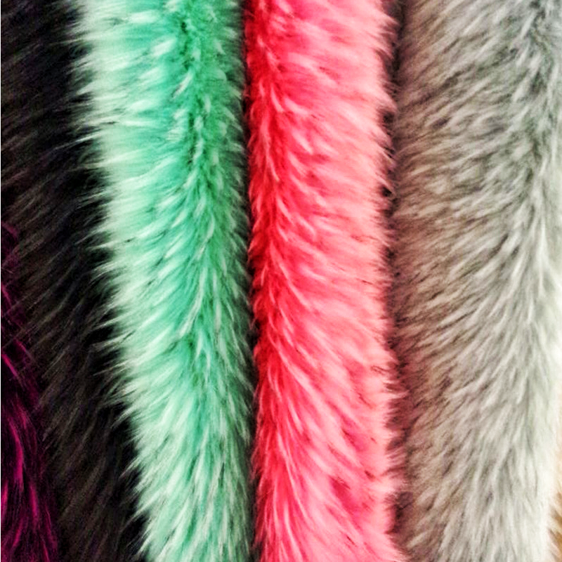 Tapisserie à col Offre Spéciale, tapis jouet multicolore cheveux longs Jacquard Polyester Dye-tip raton laveur fausse fourrure tissu/
