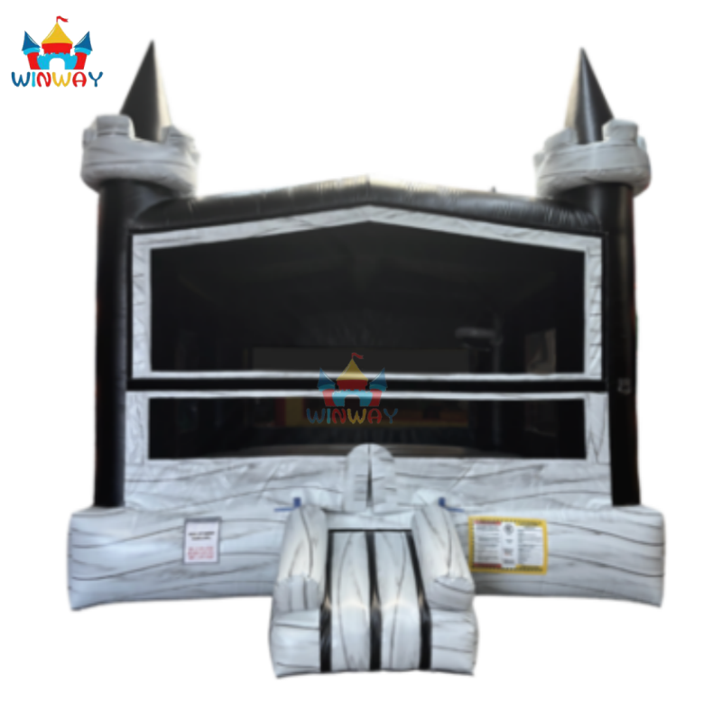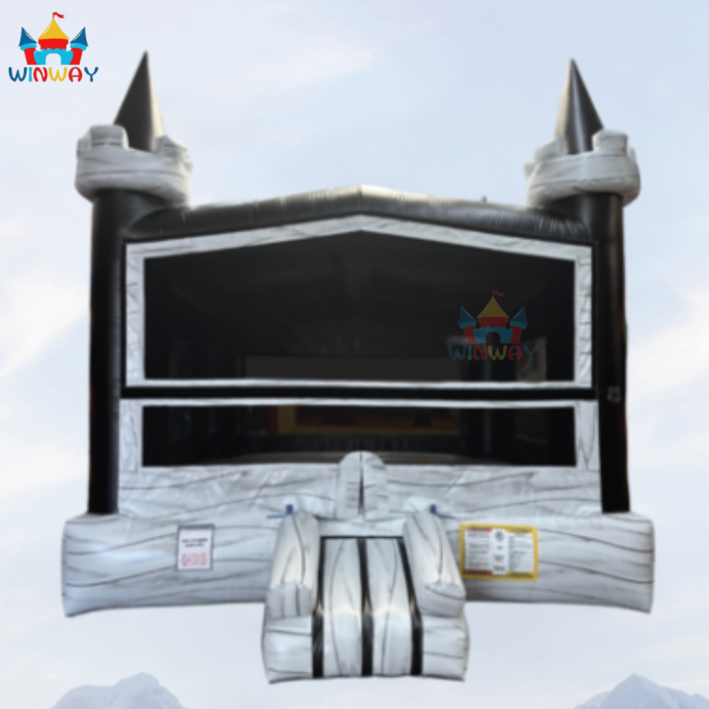 Vente chaude Château gonflable commercial en PVC noir et blanc 4x4m Facile à installer Château gonflable personnalisé pour le plaisir