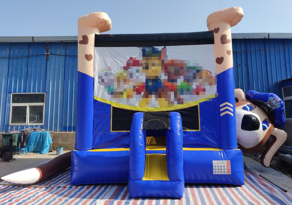 Château gonflable commercial à thème de dessin animé, château bleu en PVC, maison de rebond avec souffleur, parc pour enfants, chiens et famille, vente chaude
