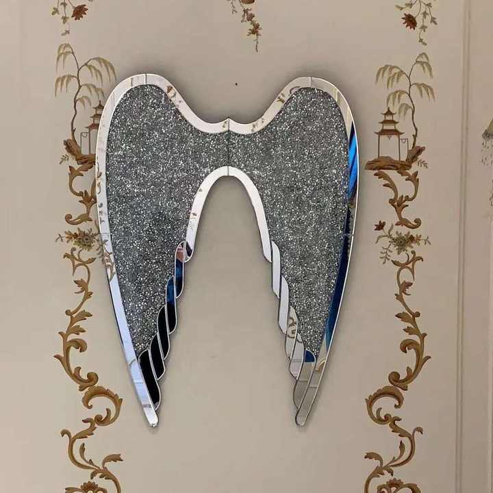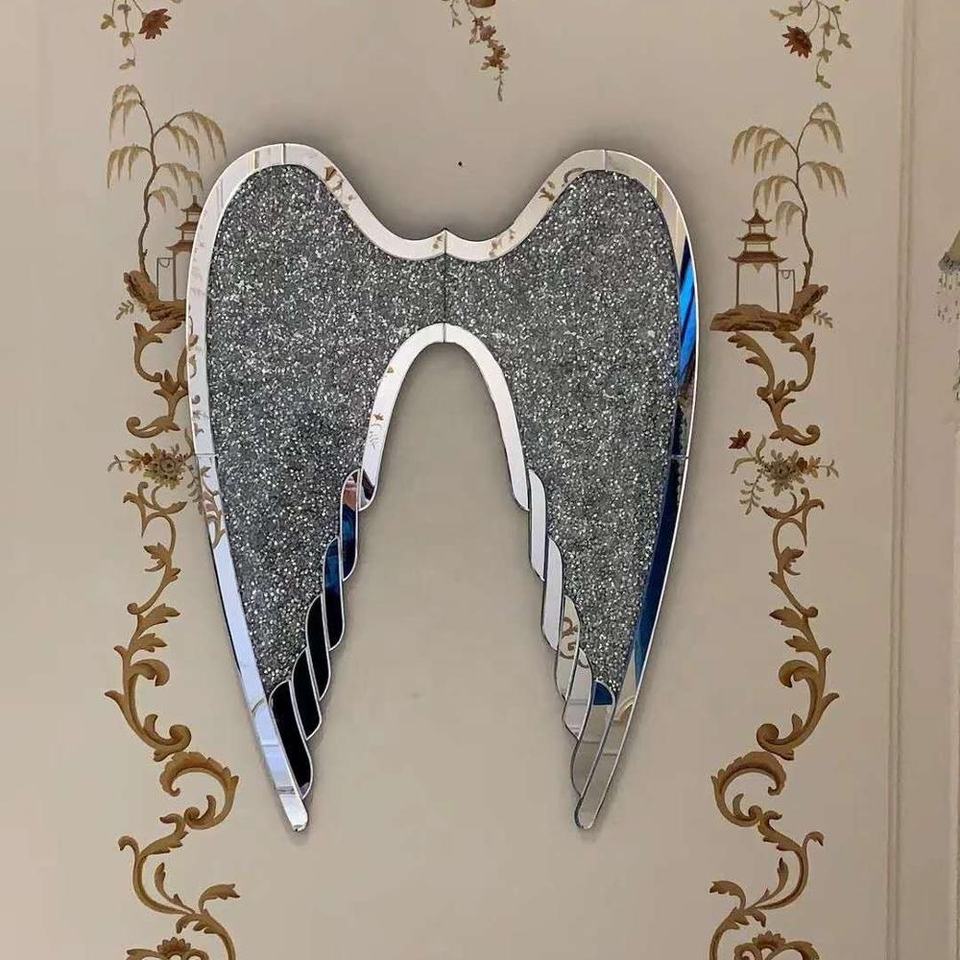 Décoration murale en diamant écrasé au design contemporain Offre Spéciale avec ailes d'ange en miroir pour la décoration intérieure