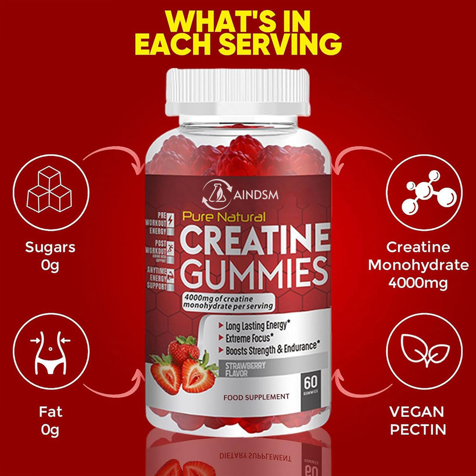 Vente flash : Gummies à la créatine sans sucre, gummies énergétiques, récupération musculaire, amélioration des performances, gummies à la monohydrate d'acides aminés