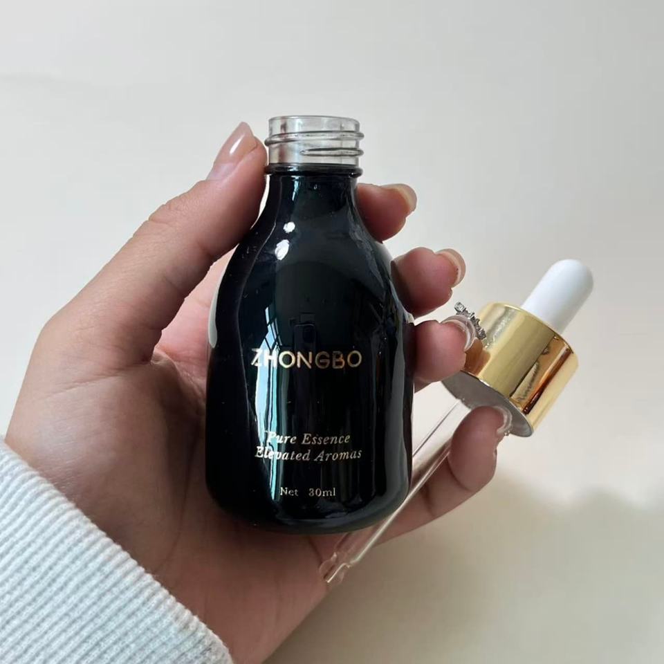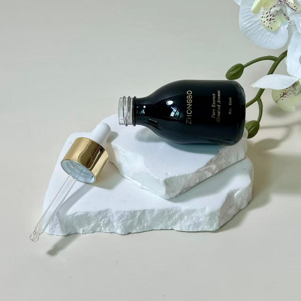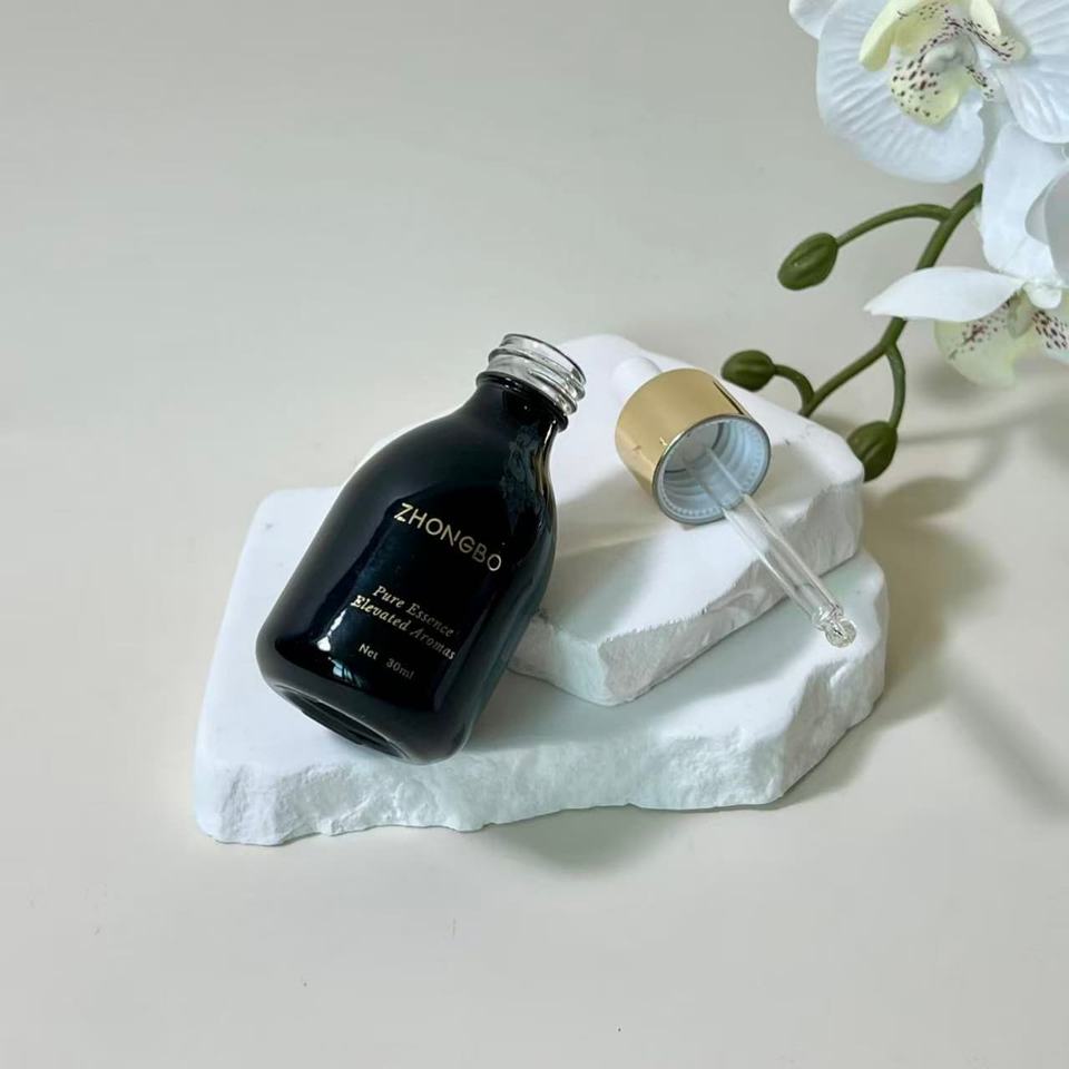 Offre Spéciale – Flacons compte-gouttes personnalisés en verre noir mat de 30 ml avec bouchons transparents pour huiles essentielles, idéaux pour les soins de la peau et des cheveux
