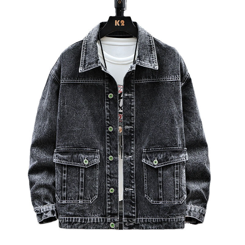 Hot Sale Custom Black Slim Casual Wearing Retro Style Turn Down Collar Oversized Vintage Washed Denim Men's Jackets