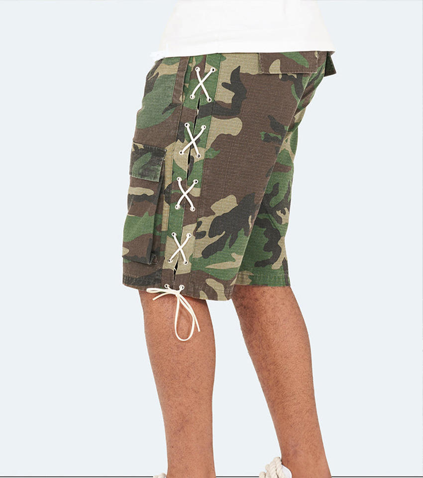 Offre Spéciale conception personnalisée 100% coton sérigraphie cordon court décontracté été Vintage dentelle Cargo Shorts pour hommes