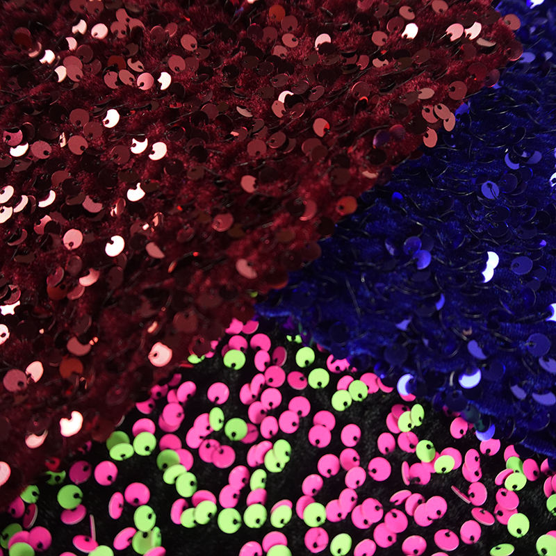Offre Spéciale conception personnalisée options de couleur super doux bleu rouge bordeaux brillant velours tissu avec paillettes pour les femmes robe