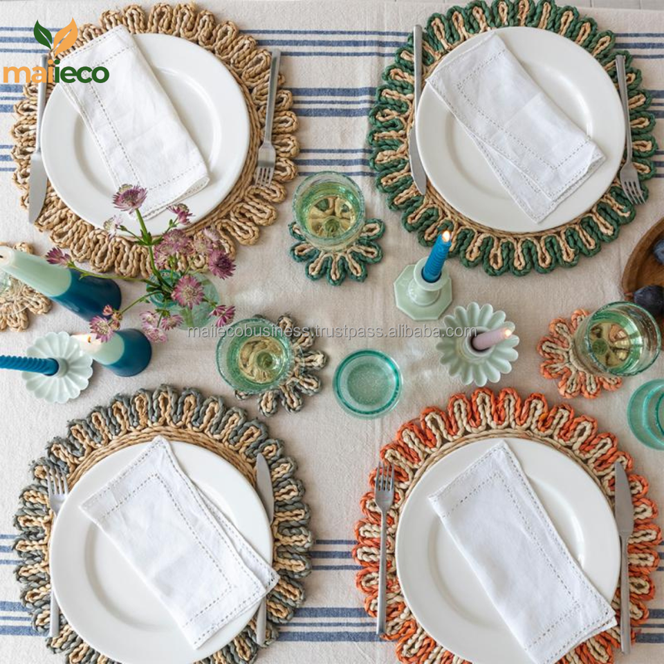 Offre Spéciale personnalisé écologique balle de maïs Table à manger tapis et tampons ensemble accrocheur sous-verre ensemble pour verre Carton cuisine utilisation