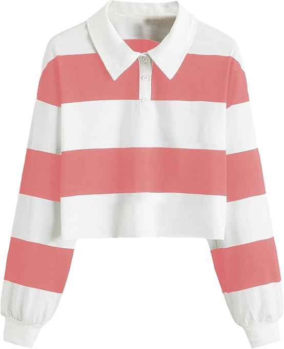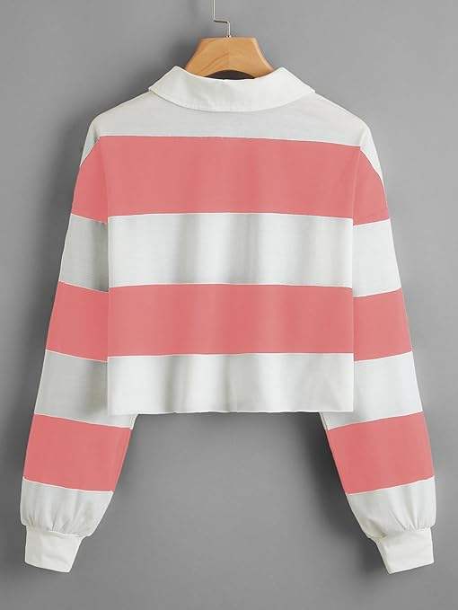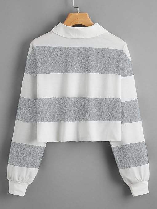 Polo de rugby pour femme à manches longues et épaules tombantes, avec logo brodé personnalisé et rayures – Grande Vente
