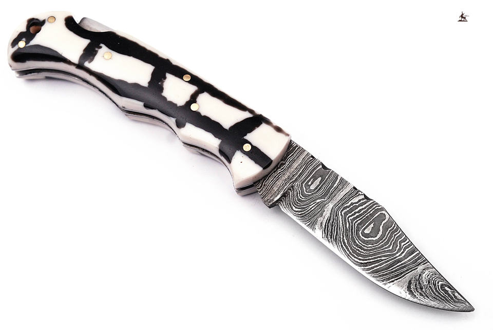 Offre Spéciale personnalisé fait à la main en acier damas couteau de poche pliant en cuir manche en bois beaux couteaux de Camping en plein air Support OEM