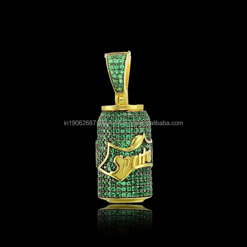 Offre Spéciale personnalisé Hip Hop Mini Sprite Bouteille Pendentif VVS Lab Grown Diamond Iced Out Charm, Plaqué Argent Sterling 925