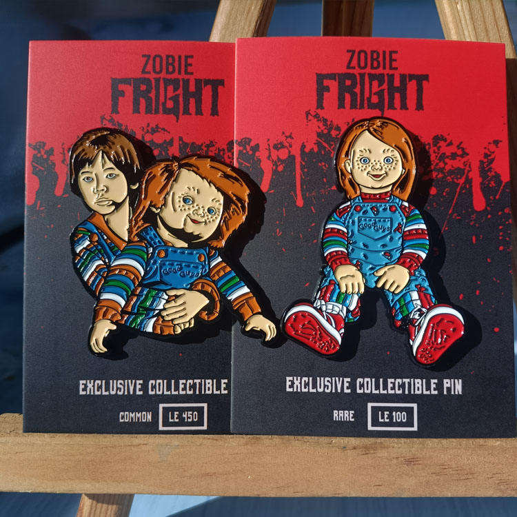 Badge en métal personnalisé thème horreur, émail souple noir teinté, avec carte en papier – Grande Vente