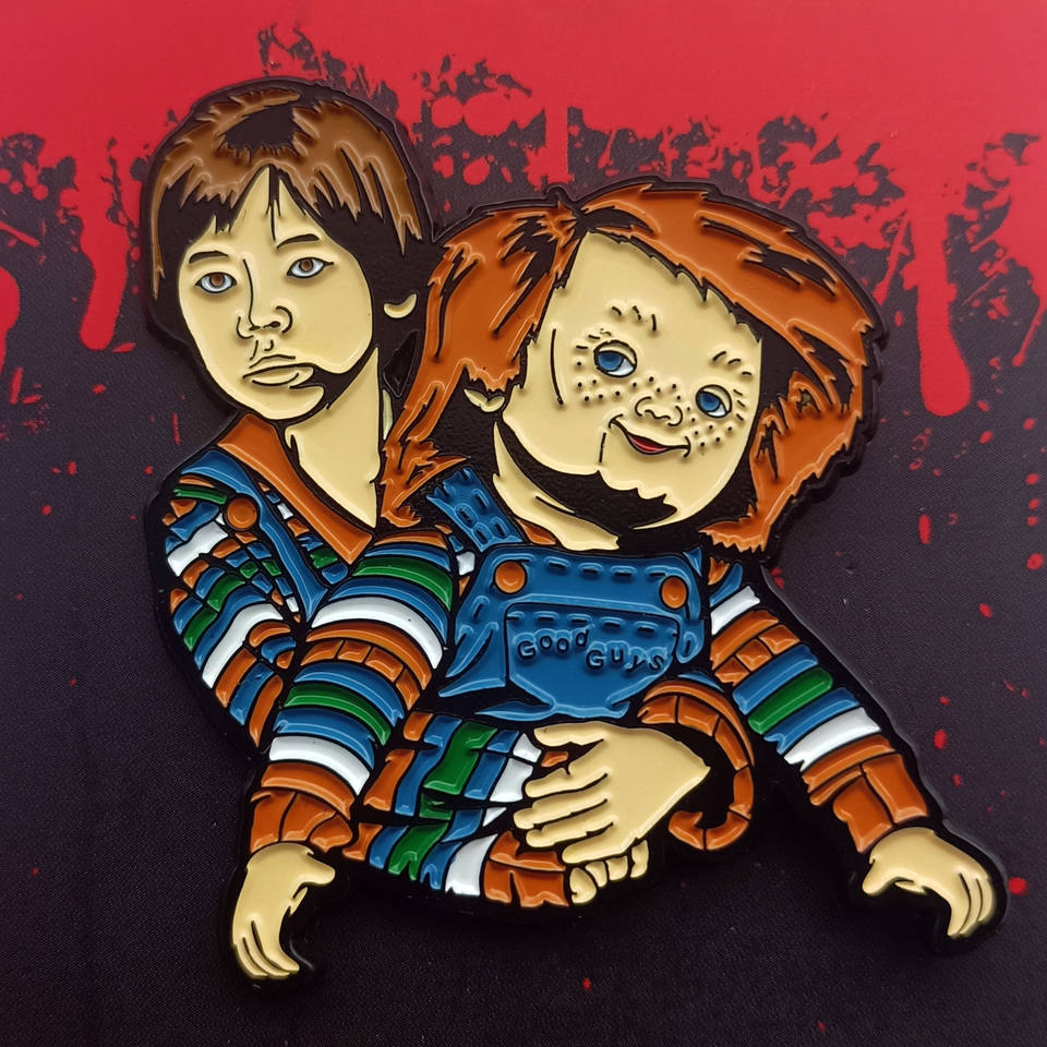 Badge personnalisé en métal sur le thème de l'horreur, épinglette en émail tendre teintée en noir