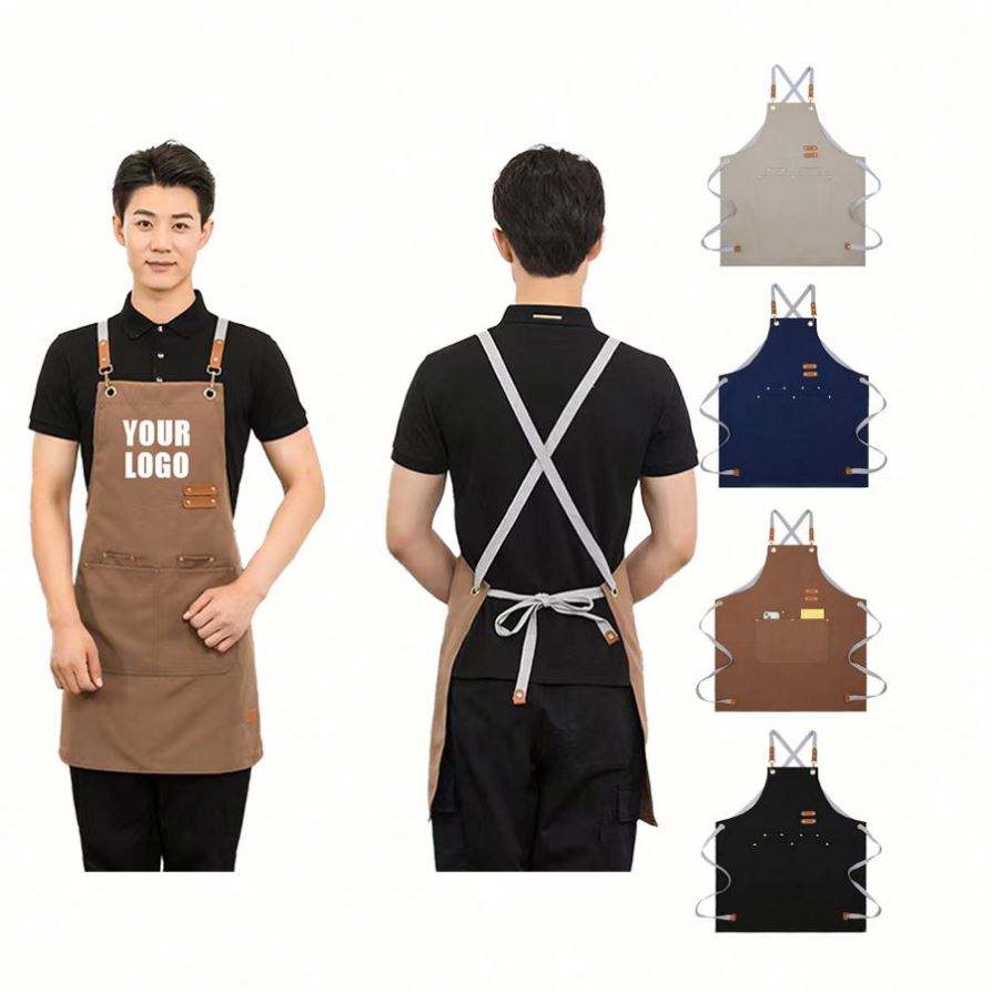 Vente chaude Tabliers personnalisés avec logo, imperméables et résistants à l'huile, en toile, pour restaurant, cuisine, uniforme de mode et jardinage