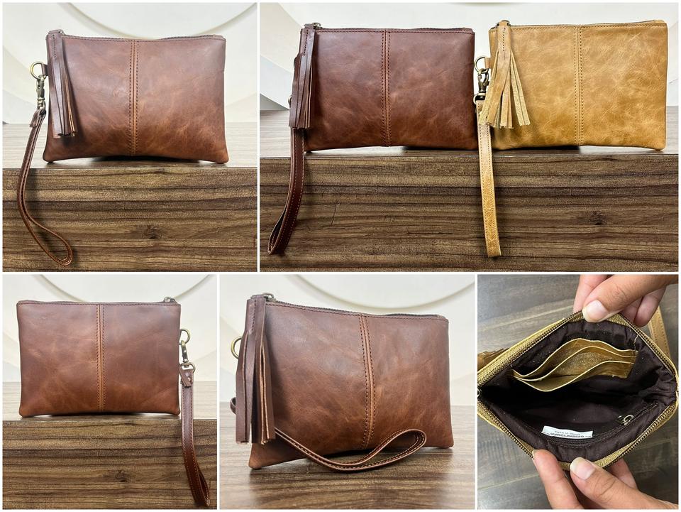 Pochette zippée de luxe en cuir véritable pleine fleur végétalien avec logo personnalisé en Offre Spéciale avec bracelet à usage multiple pochette pour femmes de mode de voyage