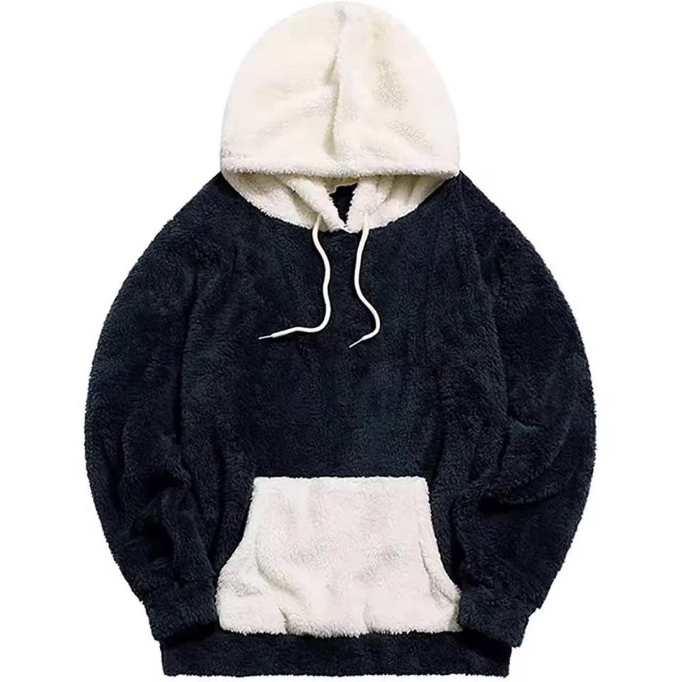 Vente chaude Sweat à capuche en sherpa avec logo personnalisé, fermeture éclair, broderie en laine d'hiver, uni, teint, respirant, séchage rapide pour hommes