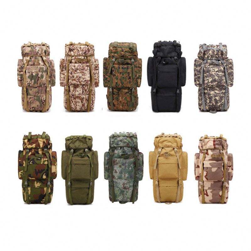 Sac à dos tactique noir de survie pour la randonnée, imperméable, personnalisé, 65L, vente chaude