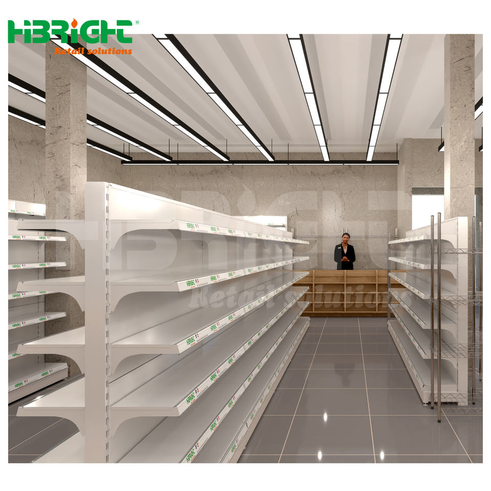 Étagère de supermarché en métal de luxe de taille personnalisée en Offre Spéciale Étagère d'épicerie à usage intensif avec conception d'aménagement