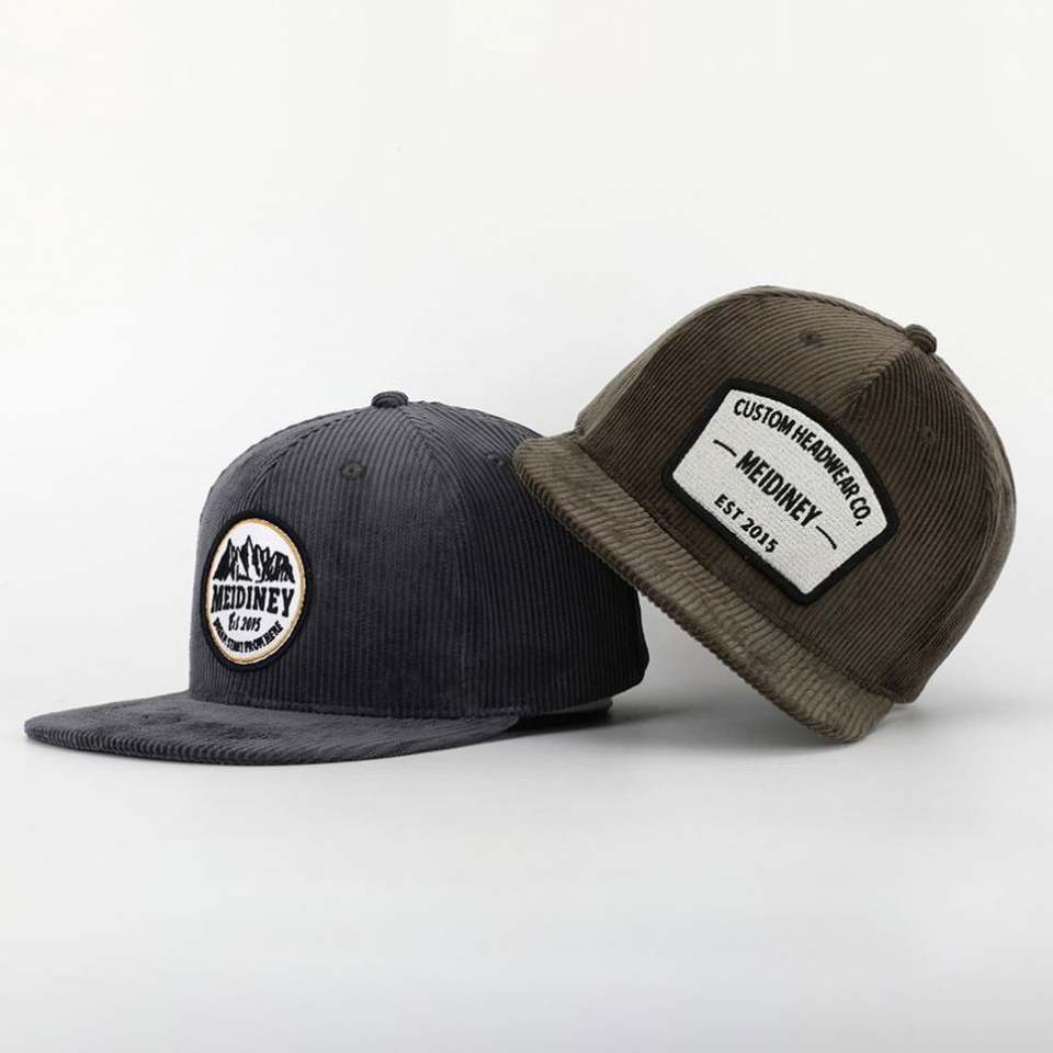 Casquette Snapback Unisexe Personnalisée 6 Panneaux en Velours Côtelé avec Logo Brodé de Haute Qualité, Visière Plate, Style Hip Hop – Grande Vente