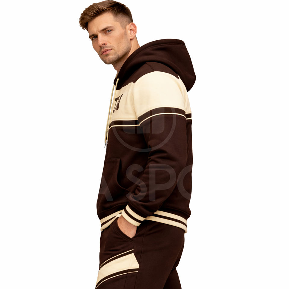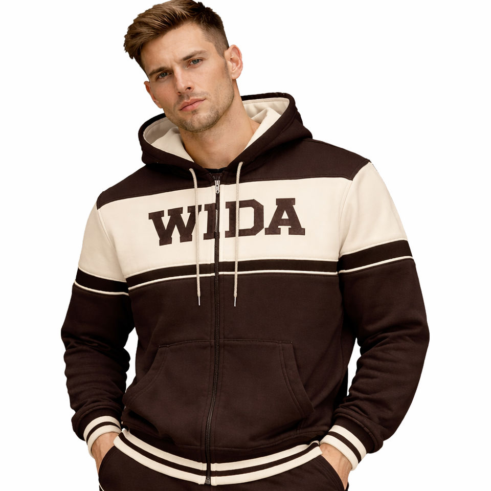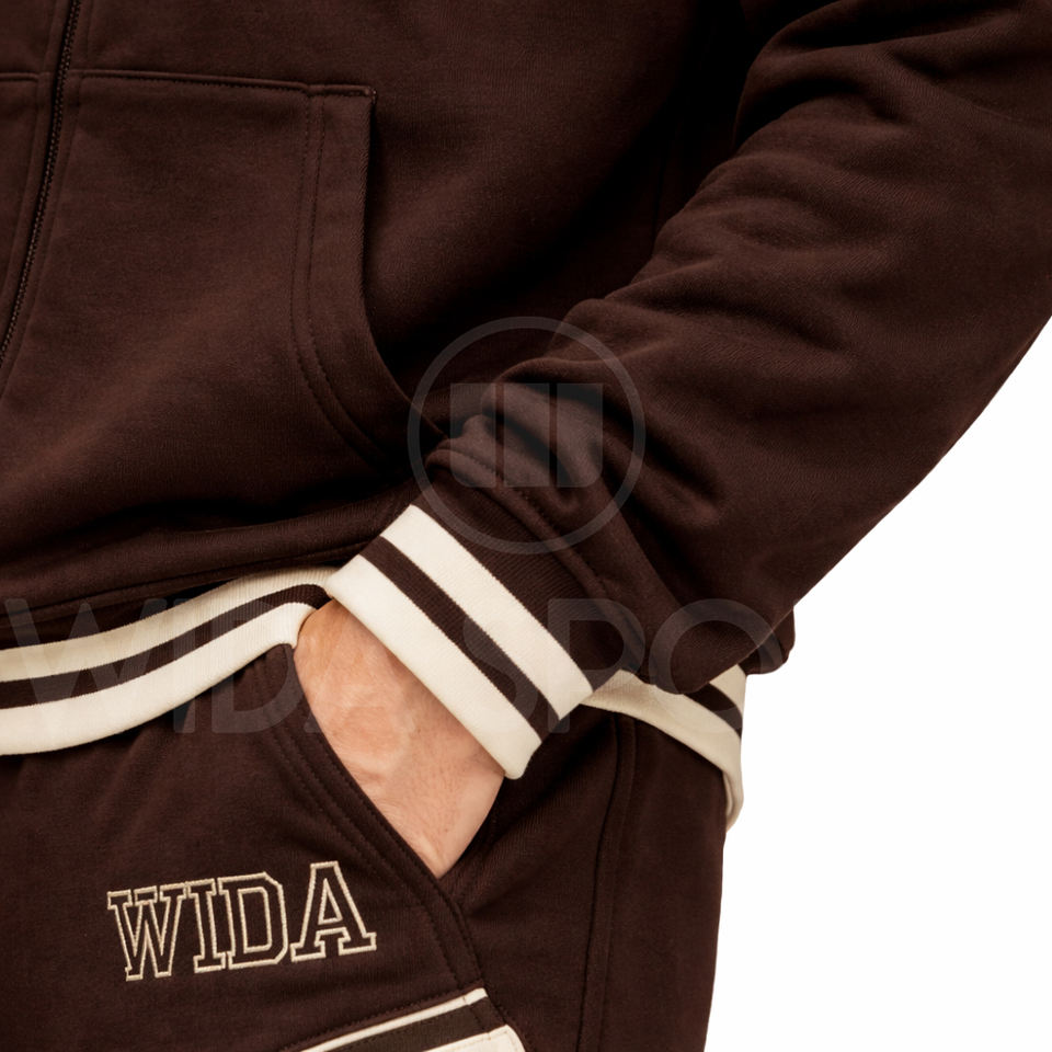 Offre Spéciale – Ensemble Survêtement Unisexe Personnalisé en Coton Uni 100% Marron avec Sweat à Capuche et Jogger Zippé pour Streetwear et Athleisure – Fabricant OEM