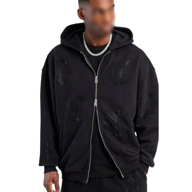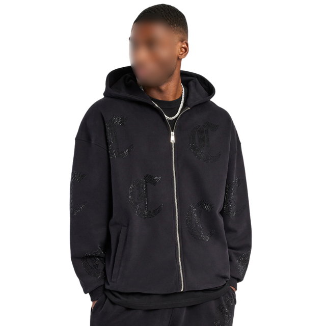 Offre Spéciale personnalisé couleur noire avec fermeture éclair complète haute qualité à prix raisonnable meilleure qualité strass survêtements