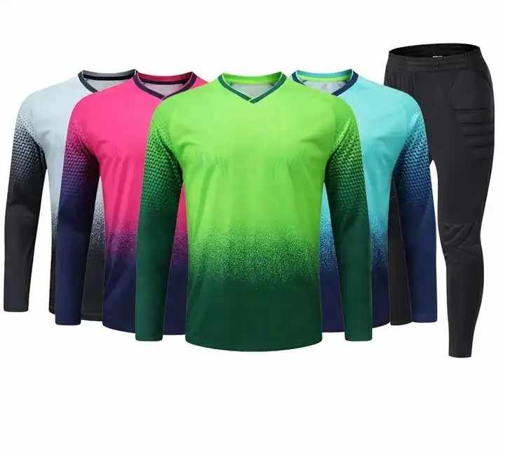 Uniforme de gardien de but de football à manches courtes respirant personnalisé en Offre Spéciale avec col en V à séchage rapide antibactérien et impression par sublimation