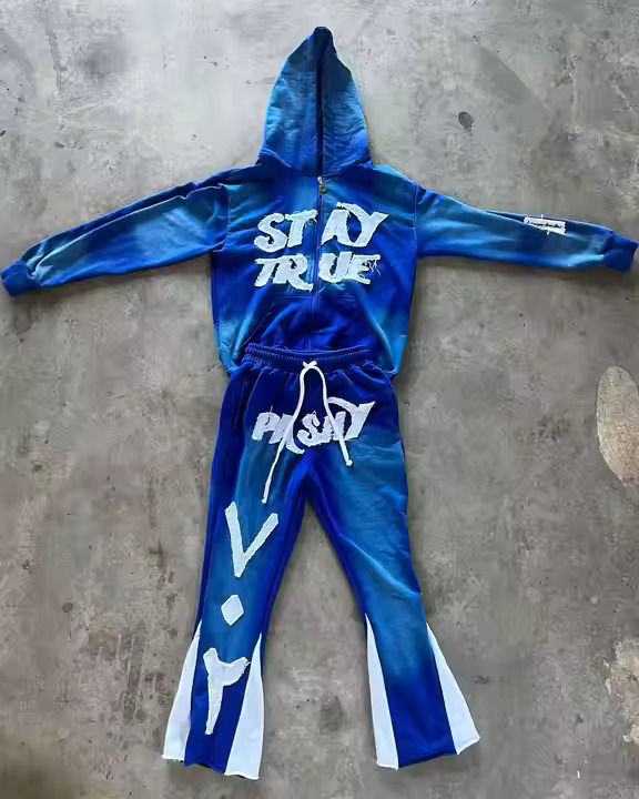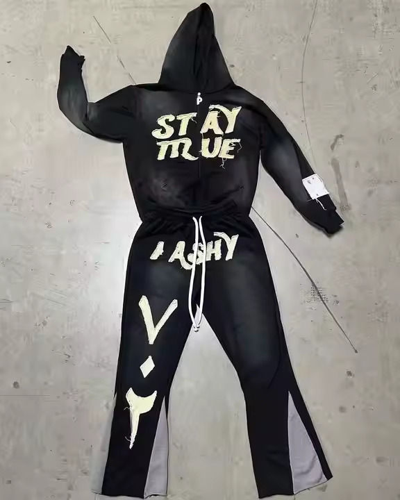Vente flash : Survêtement personnalisé avec broderie vieillie pour hommes et femmes, qualité supérieure, matière respirante, col à capuche, ensemble d'hiver