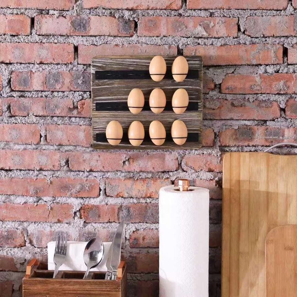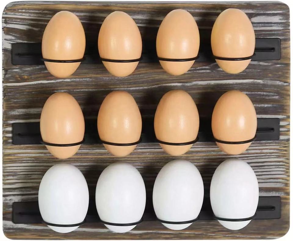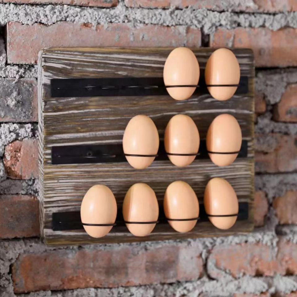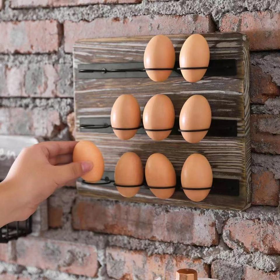 Présentoir d'oeufs mural en bois écologique personnalisé en Offre Spéciale boîtes de rangement d'oeufs frais de ferme de Style campagnard en métal noir bacs