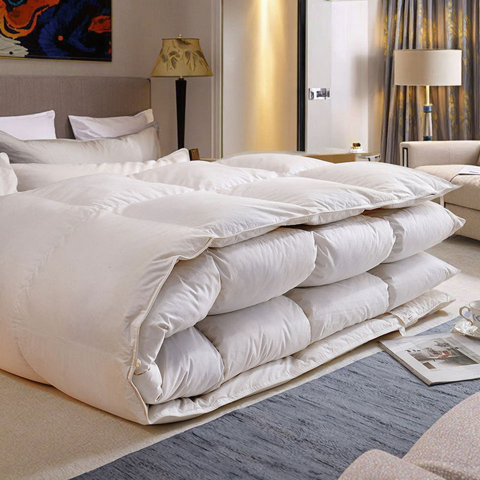Vente chaude Couette d'hiver personnalisée de qualité hôtelière, chaude et moelleuse, en coton, avec garnissage en duvet d'oie et de plumes de canard