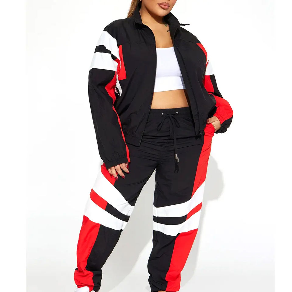 Vente chaude, sur mesure, nouvelle veste coupe-vent de haute qualité pour femmes, ensemble de survêtement zippé, pantalon de jogging rayé, ensembles coupe-vent personnalisés