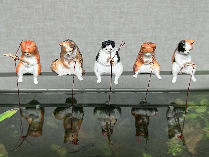 Offre Spéciale mignon Mini chat de pêche en plastique modèle écologique bricolage Terrarium ornement décoratif pour la décoration de réservoir de poissons