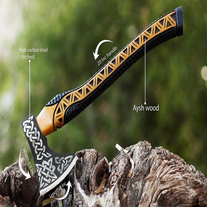 Hache et haches personnalisées de qualité bricolage Offre Spéciale Hache en acier au carbone faite à la main avec manche en bois de rose Gaine en cuir fin Gravure à l'acide