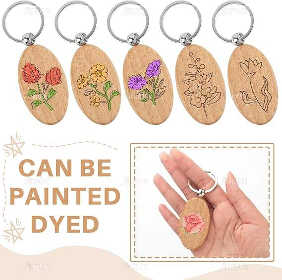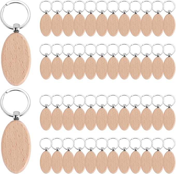 Offre Spéciale : Porte-clés en Bois DIY, Étiquettes Vides Polies avec Anneaux, Logo Gravé au Laser, Prêts pour la Vente en Gros et Cadeaux Promotionnels