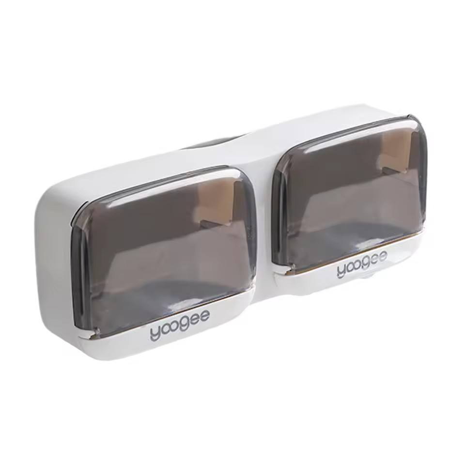 Porte-savon mural en plastique à double grille durable Offre Spéciale avec couvercle rabattable et égouttoir à poinçon gratuit pour usage domestique