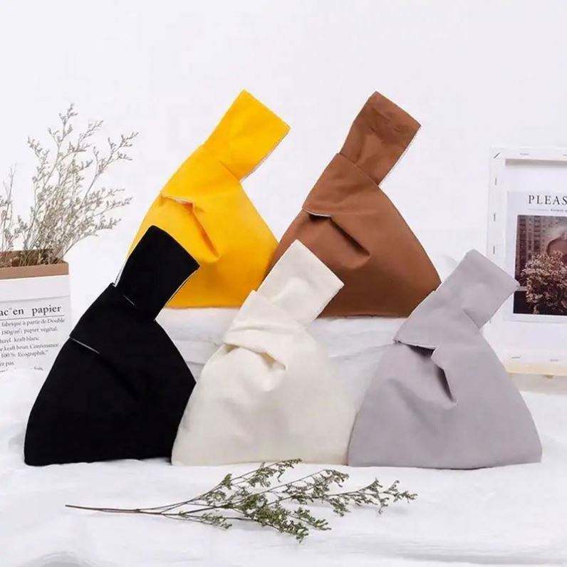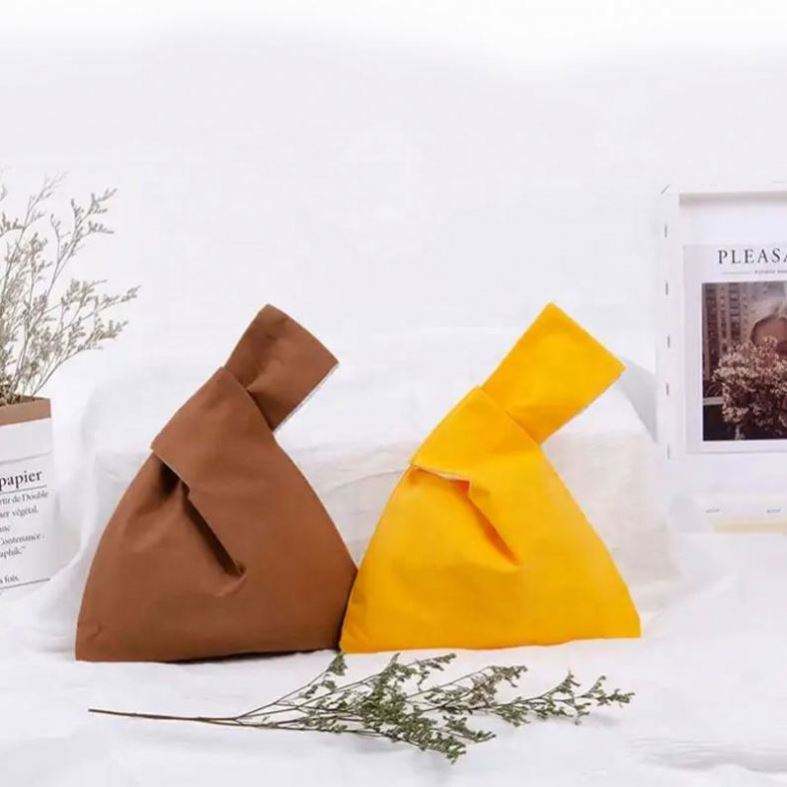 Sac à poignet noué en toile de coton écologique, style japonais, personnalisable, couleur unie, en tissu réutilisable, nouvelle collection, offre spéciale