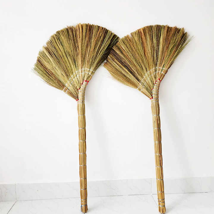 Vente flash - Balai en herbe naturelle écologique | Balai à manche en plastique fait main en gros | Balai de nettoyage domestique à prix abordable