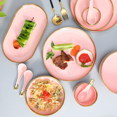 Offre Spéciale Écologique Phnom Penh Ronde Porcelaine Rose Glaçure Vaisselle En Céramique Plaque Ensembles